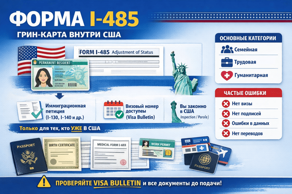 Форма I-485 — центральный этап получения Green Card внутри США.