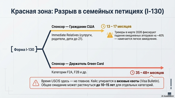 I-130 остаётся медленной формой, особенно в LPR-based family categories.